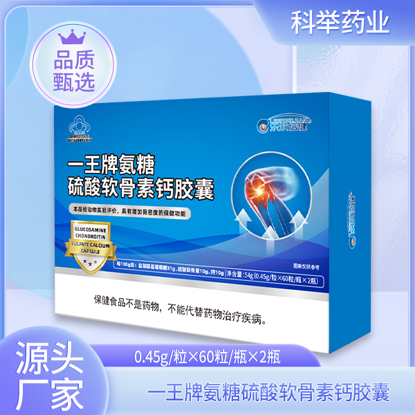【標志性成分及含量】每100g含:鹽酸氨基葡萄糖31g、硫酸軟骨素10g、鈣10g